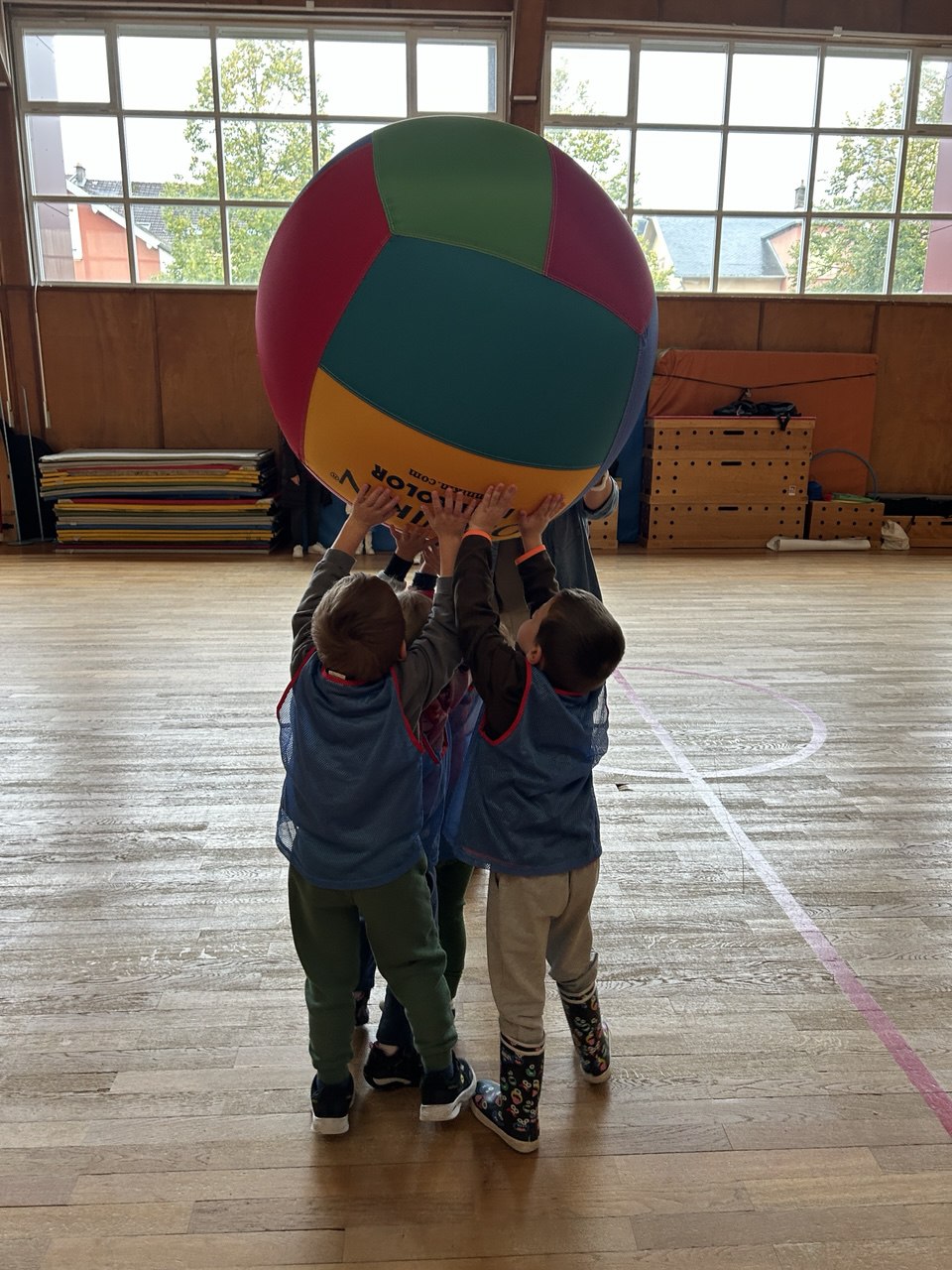 La matinée a été consacrée aux élèves de maternelle, qui ont pu découvrir le Kin-ball, un sport collectif original et spectaculaire, suscitant beaucoup d’enthousiasme chez les plus jeunes. La randonnée prévue pour les élémentaires le matin a dû être annulée en raison d’un temps capricieux, mais l’après-midi a offert un riche programme de jeux sportifs et coopératifs adaptés à tous.